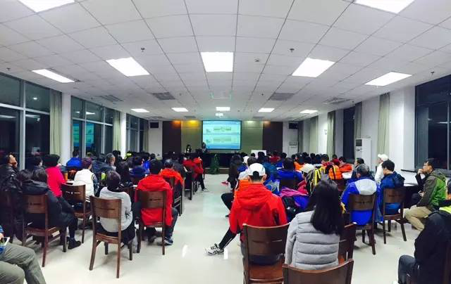 晚上九点,海滨的夜晚寒风刺骨,明星满天,气温已经降到冰点以下,纵使如此,嘉扬志愿者依旧热情满怀地接受超马赛前培训,力争为超马参赛者提供最为贴心与周到的服务。