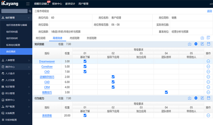 助力员工制定岗位发展目标,查看目标岗位说明;