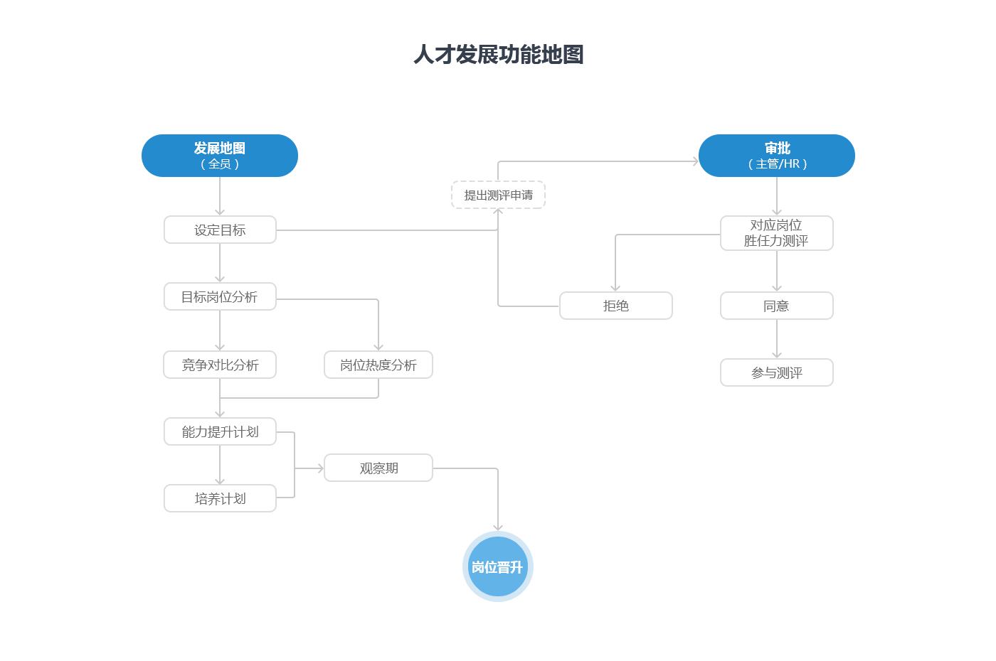 绘制学习地图,通过工作拓展、项目锻炼、知识技能培训等方式制定有针对性的培养计划,促进人才发展;